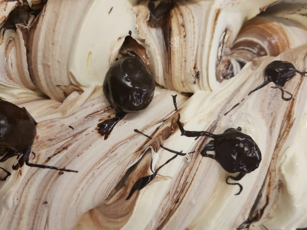 Edi heeft de smaak Aranciolata bedacht. Een mooie variegato met een gele crème basis met gesuikerde sinaasappelschil en beignets gedompeld in chocoladesaus. Uit Didi’s hand komen de Ricotta vijg, Kokos passievrucht en de Blueberry lemoncake.