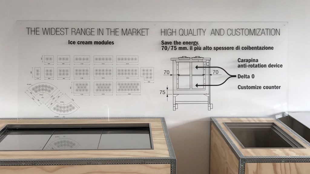 De traditionele zilveren deksels zorgen bij de consument voor nieuwsgierigheid en spanning, want wat zit er onder die deksel? De omgeving van de vitrine dient wel in te spelen op deze nieuwsgierigheid, want men ziet het ijs dus niet. Gebruik het smakenkaartje, de ruimte achter de vitrine aan de wand of op een andere plek in uw zaak om de sfeer te bepalen.